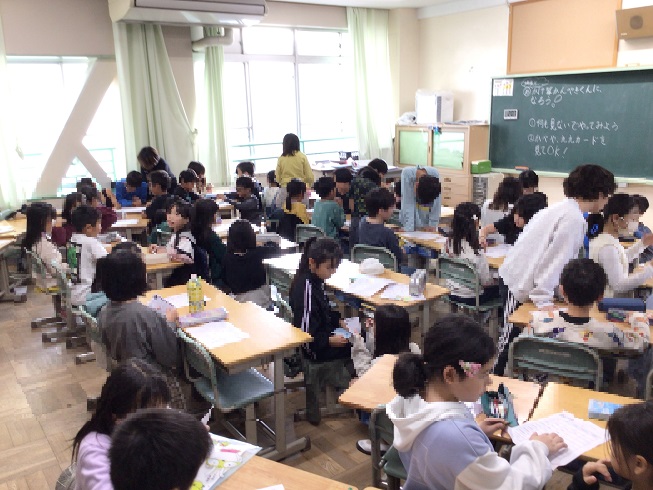 本校は、「つながりました 広がりました 深まりました ~自己選択・自己決定の場を通して、共感できる場面を増やす~」を研究テーマとして、学びの中で子どもたちが自分の考えを持ち、主体的に活動する力を身につけられるような授業づくりを研究しています。